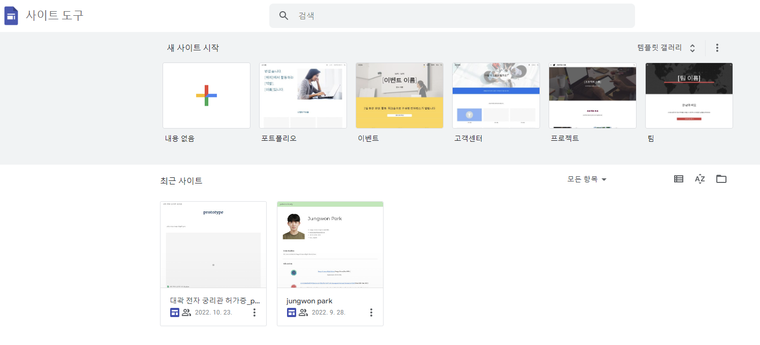 Google에서 제공하는 웹페이지 개발 도구인 Google Sites를 이용하여 허가증 시스템의 전신인 메인 페이지를 만들자.